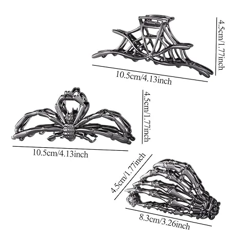 • Versatile Styling: These 3pcs spider, spider web and Skeleton Hand hair clips offer a unique and trendy way to style your hair, perfect for girls and women. Especially decorating your bun for Halloween.