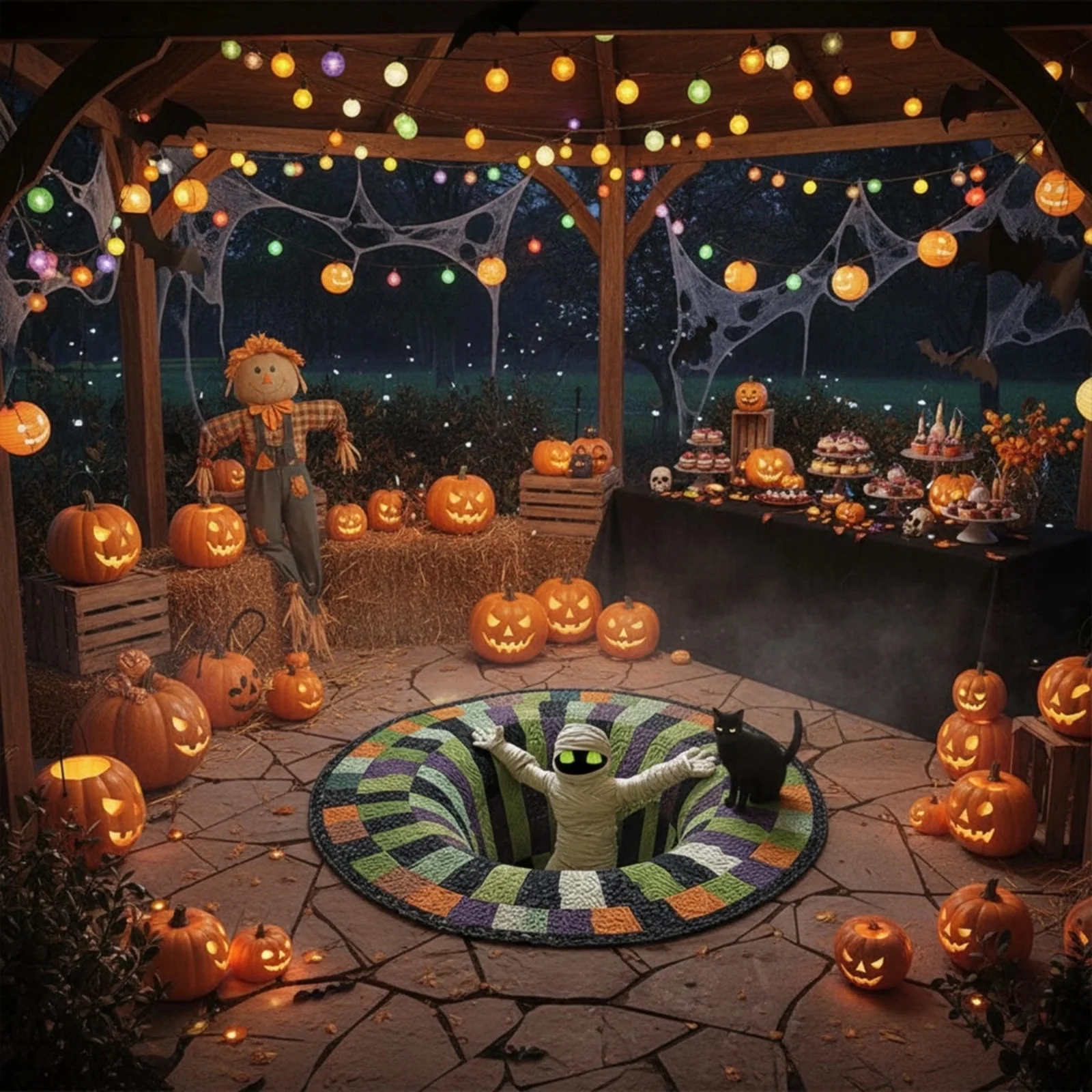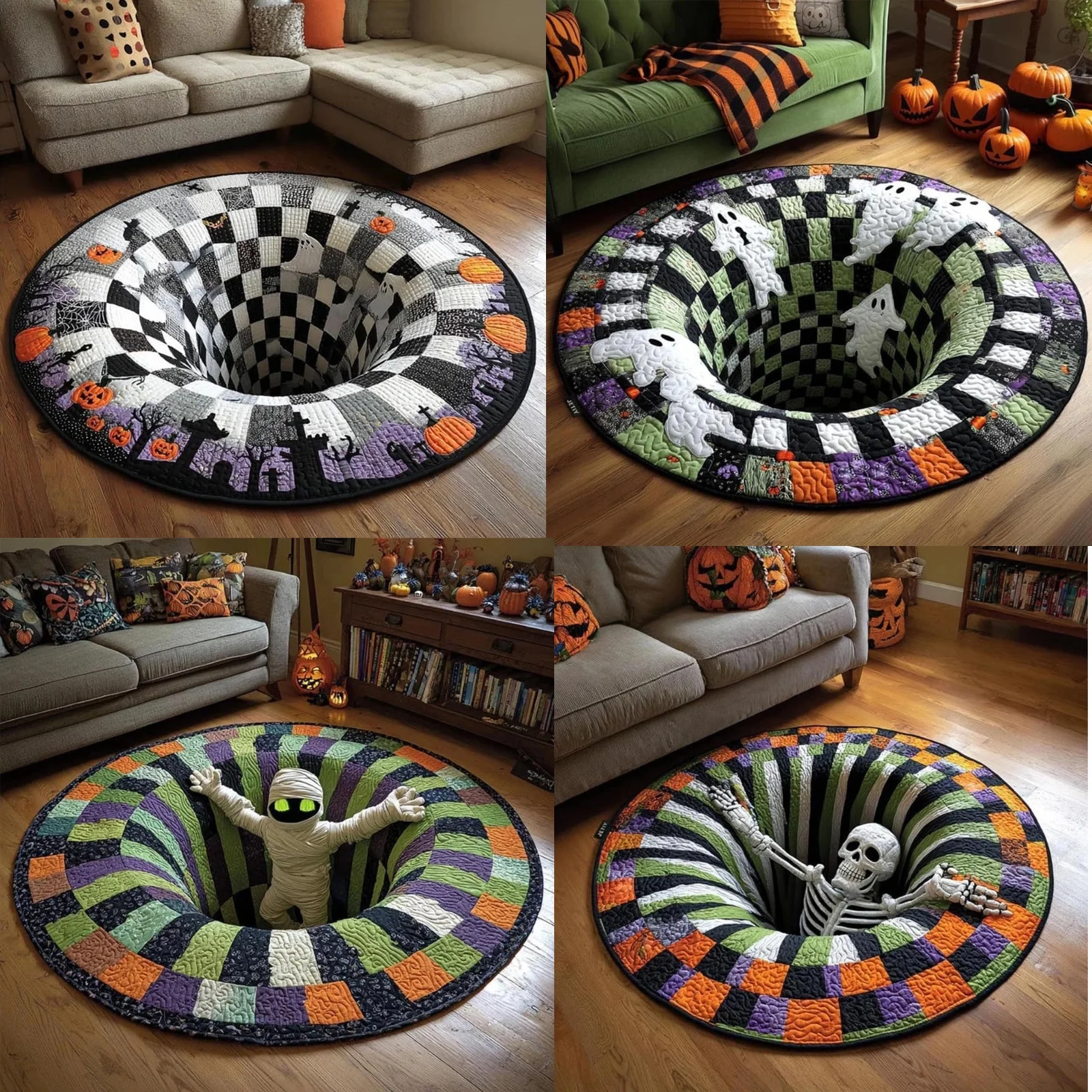 Halloween 3D Rug – Halloween Optical Illusion Rugs, Ghost Skeleton Pumpkin Patterns, Decorative Rugs with Depth Pattern, Soft & Durable Fabric, Halloween’s Area Rugs for Living Room (32Inch)